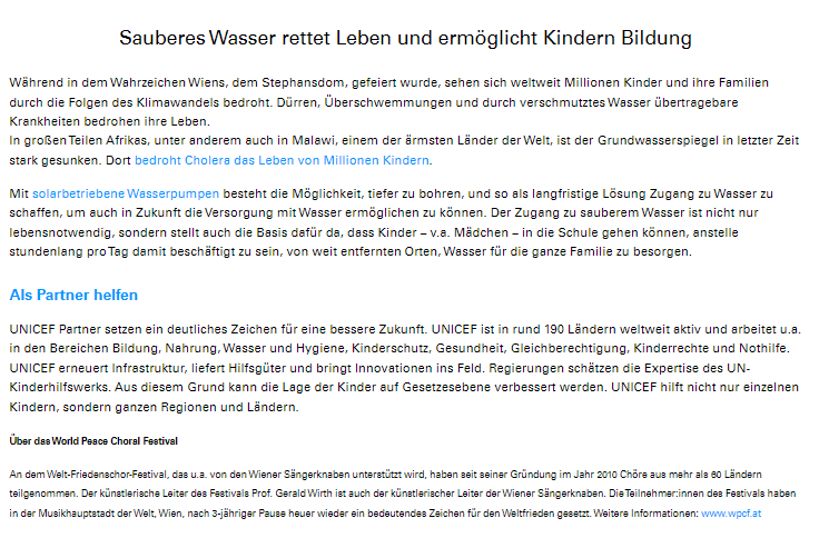 联合国儿童基金会高度赞扬第十二届世界和平合唱节联合国儿童基金会(奥地利分站)高度赞扬